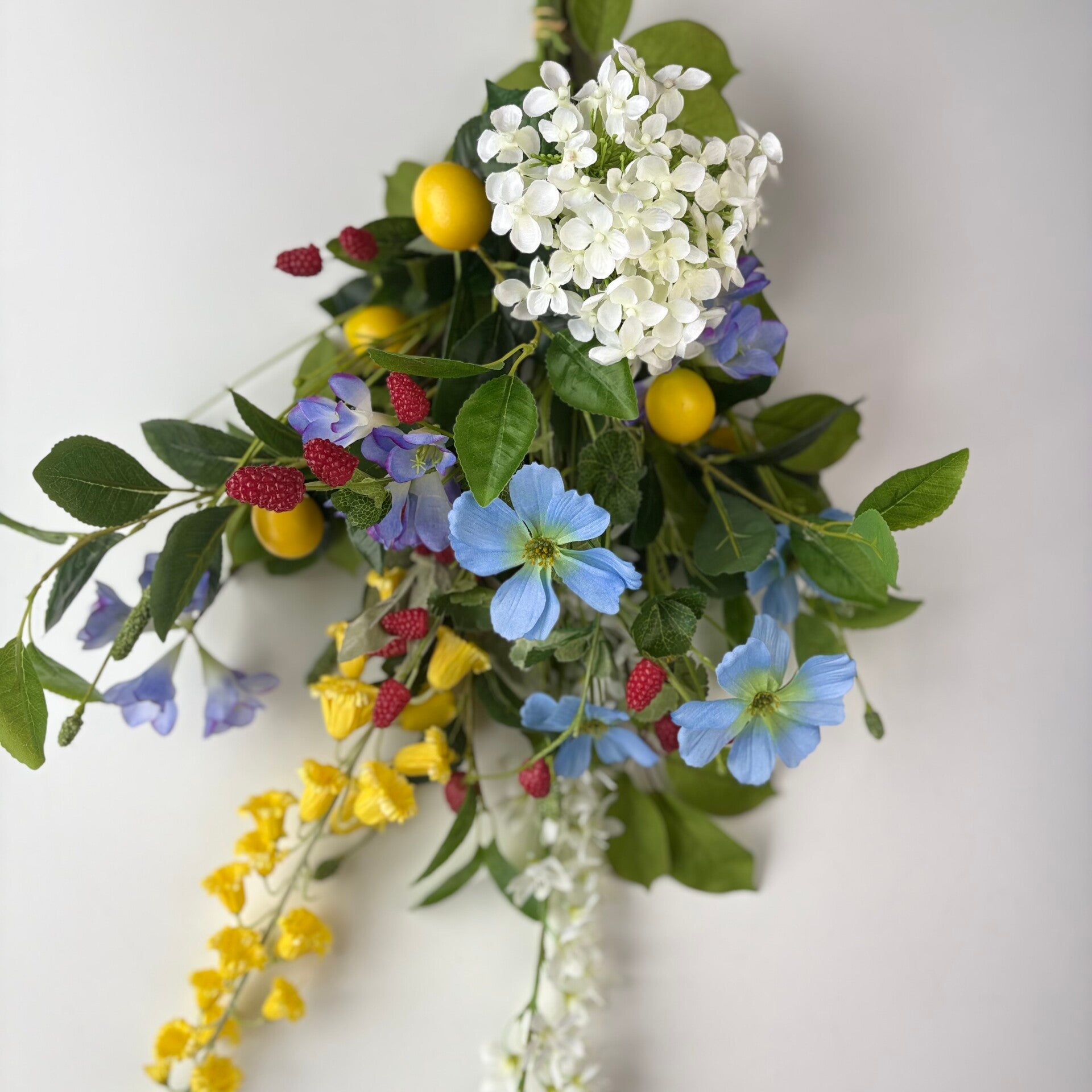 Dit zijdenboeket is maat M, Ø 50 x H 100 cm en excl. vaas. Dit boeket kan ook in maat S gemaakt worden.