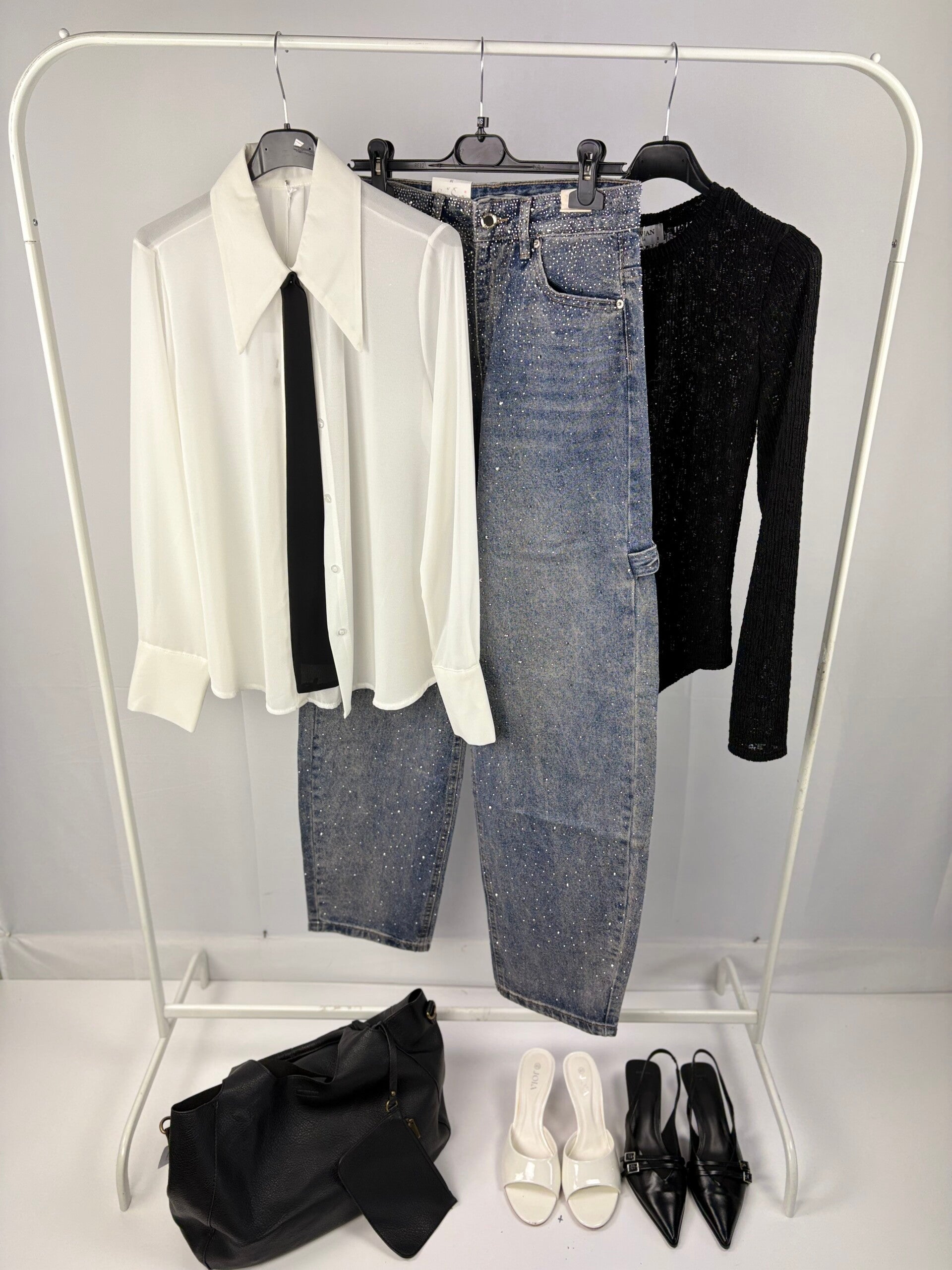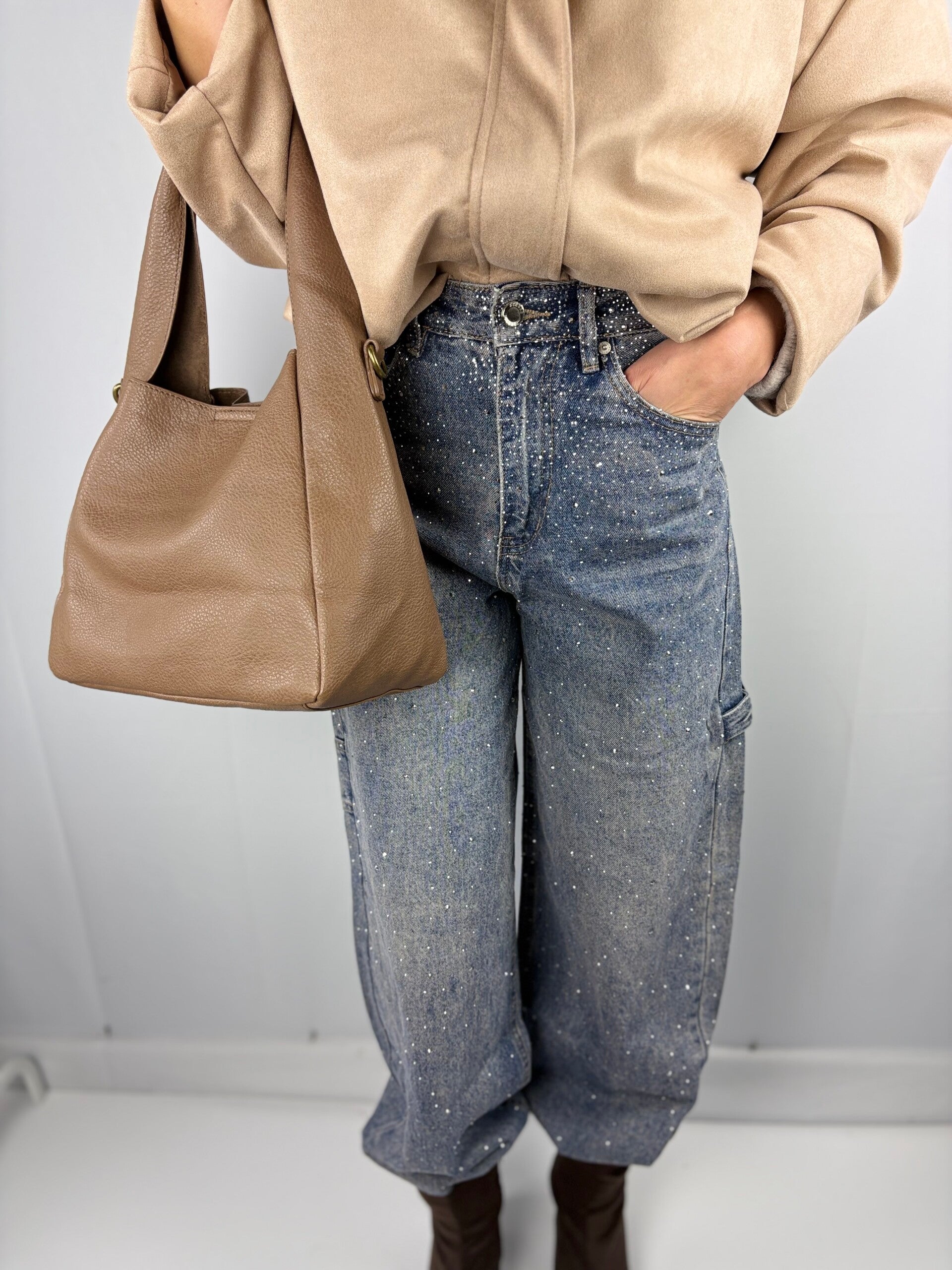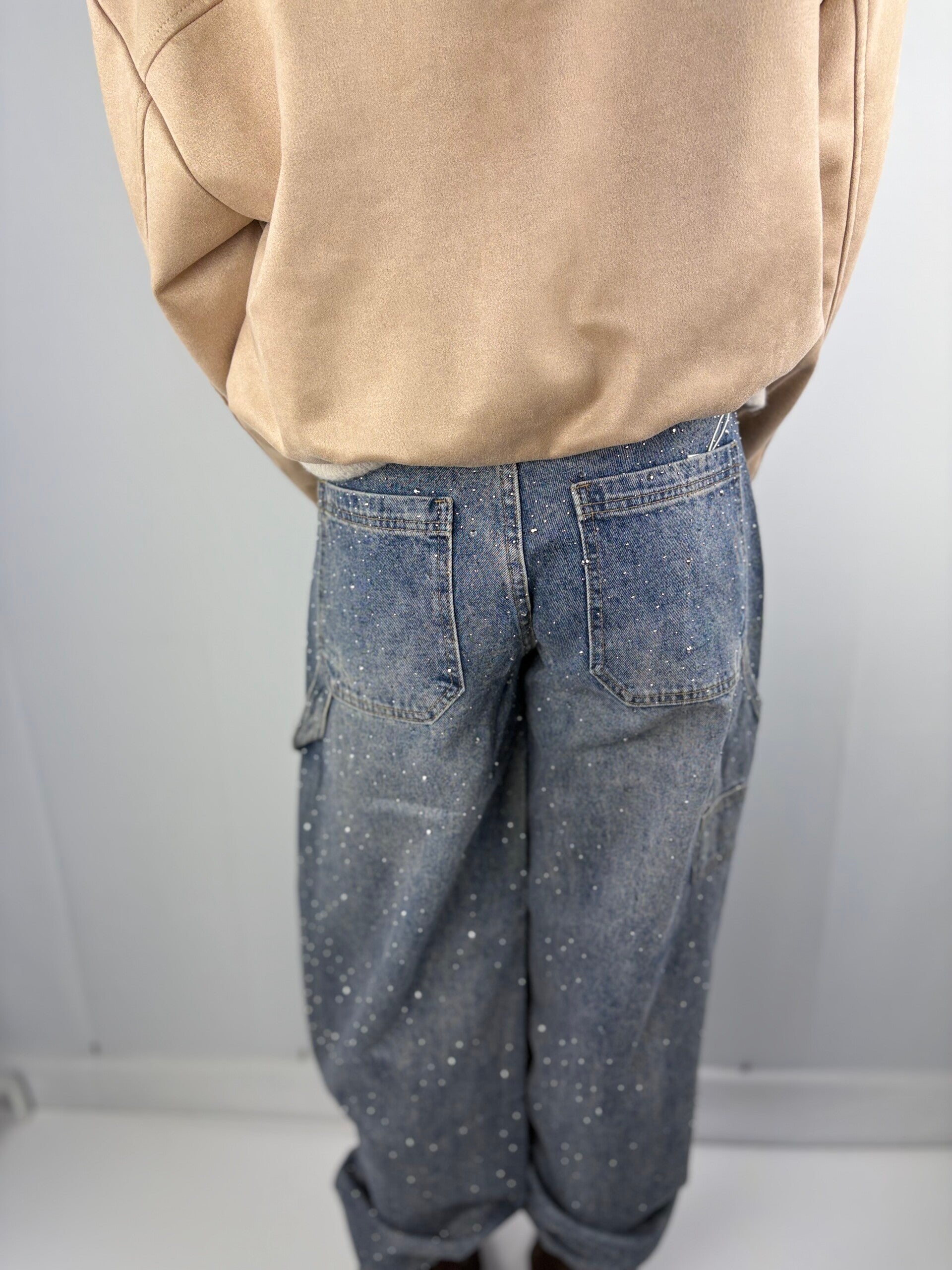 Deze Jeans is zo trendy. het is een ballon model en hij zit vol met kleine diamantjes. hij is verkrijgbaar in mt 36